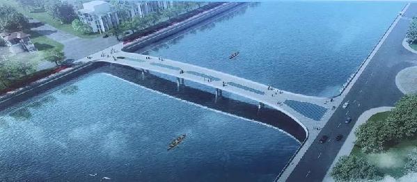 The Bridge will be 147 meters long and 15 meters wide, stretching from Jiangyue Road in Wuyang New Town to Qinglan Road in Ersha Island. It will serve for non-motorized transportation between the Donghu area, Wuyang New Town area and the Ersha Island, complementing the function of the existing 4 river-crossing passages, namely the Haiyin Bridge, Haizhu Hotel Bridge, Guangzhou Bridge, and Haixin Bridge.