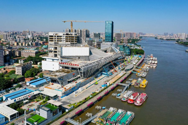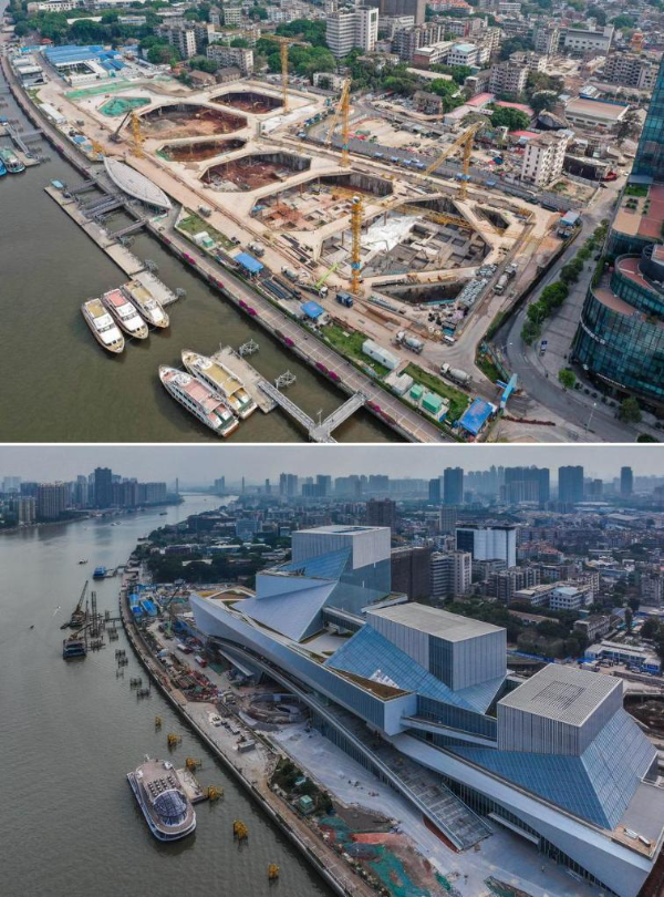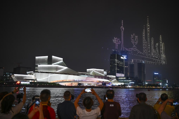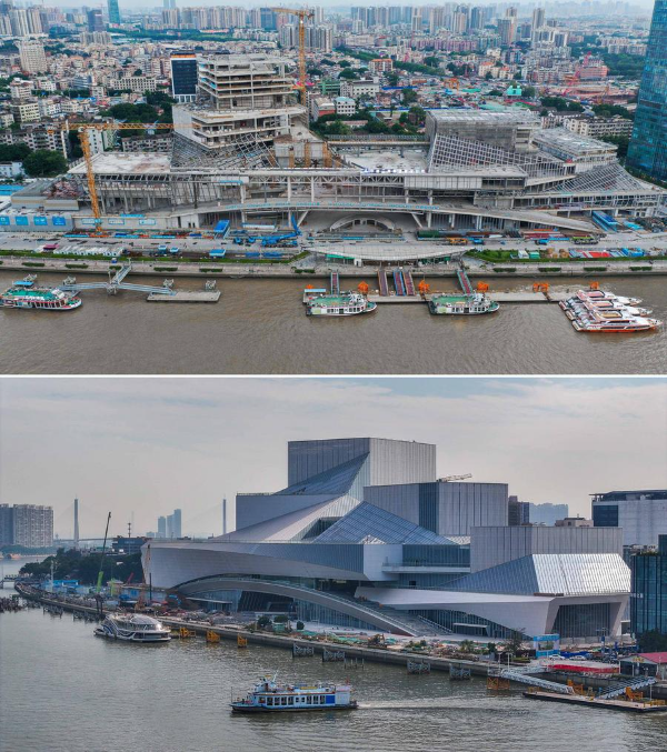 The inauguration ceremony of the Bai'etan Greater Bay Area Art Center is held in Guangzhou, south China's Guangdong Province, April 28, 2024. Chinese architect He Jingtang (C), chief designer of the Bai'etan Greater Bay Area Art Center, watches a drone show staged around the art center in Guangzhou, south China's Guangdong Province, April 28, 2024. A light show is staged at the Bai'etan Greater Bay Area Art Center in Guangzhou, south China's Guangdong Province, April 28, 2024. A drone show is staged around the Bai'etan Greater Bay Area Art Center in Guangzhou, south China's Guangdong Province, April 28, 2024. This combo photo shows the Bai'etan Greater Bay Area Art Center under construction in Guangzhou, south China's Guangdong Province, on Oct. 12, 2022 (above) and on Dec. 27, 2023 respectively. This combo photo shows the Bai'etan Greater Bay Area Art Center under construction in Guangzhou, south China's Guangdong Province, on Dec. 1, 2021 (above) and on Nov. 25, 2023 (photo taken by Xinhua photographer Liu Dawei) respectively. This combo photo shows the Bai'etan Greater Bay Area Art Center under construction in Guangzhou, south China's Guangdong Province, on July 21, 2022 (above) and on Dec. 27, 2023 (photo taken by Xinhua photographer Liu Dawei) respectively. This combo photo shows the Bai'etan Greater Bay Area Art Center under construction in Guangzhou, south China's Guangdong Province, on March 26, 2021 (above) and on Dec. 27, 2023 (photo taken by Xinhua photographer Liu Dawei) respectively. An aerial drone photo shows the Bai'etan Greater Bay Area Art Center under construction in Guangzhou, south China's Guangdong Province, Dec. 27, 2023. This photo shows the Bai'etan Greater Bay Area Art Center under construction in Guangzhou, south China's Guangdong Province, Oct. 12, 2022. An aerial drone photo shows the Bai'etan Greater Bay Area Art Center under construction in Guangzhou, south China's Guangdong Province, Oct. 12, 2022. A drone photo shows the Bai'etan Greater Bay Area Art Center under construction in Guangzhou, south China's Guangdong Province, Dec. 27, 2023. An aerial drone photo shows the Bai'etan Greater Bay Area Art Center (R) in Guangzhou, south China's Guangdong Province, April 27, 2024. An aerial drone photo shows the Bai'etan Greater Bay Area Art Center under construction in Guangzhou, south China's Guangdong Province, Oct. 12, 2022. An aerial drone photo shows the Bai'etan Greater Bay Area Art Center in Guangzhou, south China's Guangdong Province, April 26, 2024. An aerial drone photo shows the Bai'etan Greater Bay Area Art Center under construction in Guangzhou, south China's Guangdong Province, Oct. 12, 2022. An aerial drone photo shows the Bai'etan Greater Bay Area Art Center in Guangzhou, south China's Guangdong Province, April 26, 2024.