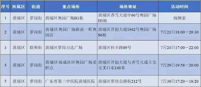 Huangpu District identified a patient who tested positive for COVID-19 at a fever clinic on July 30. We hereby notify the following information: