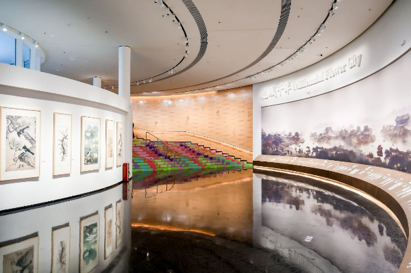 The exhibition hall of the Flower City Art Museum at the Yunxi Botanical Garden.