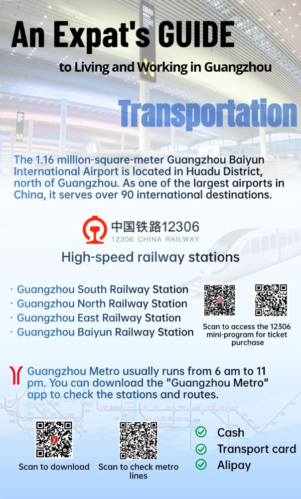 Divided into 4 chapters—Hello Guangzhou (city info), Living in Guangzhou (arrival, transport, payment, healthcare), Having fun in Guangzhou (tourist attraction, cultural venues, shopping), and Falling in Love with Guangzhou (A-Z tips, hotlines)—the handbook provides a full-spectrum roadmap from touchdown to settling in the city.