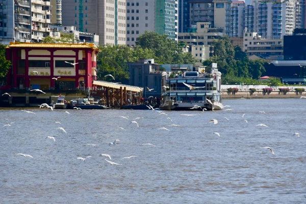 Egrets flying over Pearl River at Tianzi Wharf (Photo: Information Times)