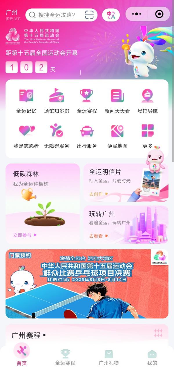 A new WeChat mini-program, "National Games Guangzhou(全運廣州)," was officially launched on July 29 to streamline services for the upcoming 15th National Games and Paralympic Games. This platform combines navigation services and event information in one place using smart technologies like instant translation and camera-guided directions.