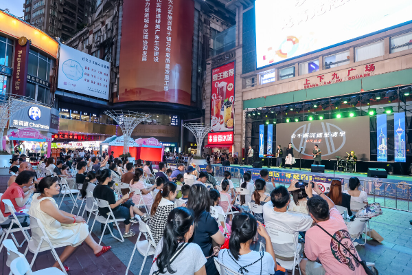 As night fell, the "Guangdong-Hong Kong-Macao Pop Music Night" took the stage at Shangxiajiu Square, featuring Macao's original band "One Way Street" performing their meticulously crafted works, and the locally popular band "B.I.G" presenting local classic songs, captivating the audience and frequently interacting with them. The square echoed with the aspirations of young people to continue traditions and innovate, evoking strong emotional resonance.
