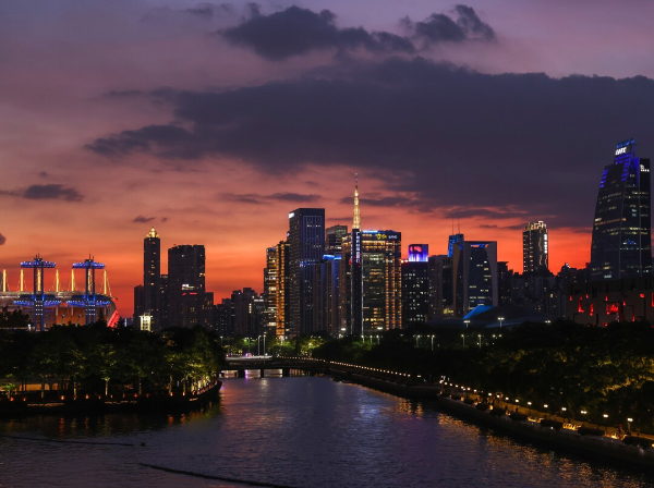 In recent days, the breathtaking pictures of the sunset sky of Guangzhou have been dominating social media feeds, presenting a mesmerizing visual spectacle with its vibrant hues and captivating clouds. On July 23rd, the sunset continued to dazzle, with crowds of people flocking to the banks of the Pearl River to witness the descending sun, while passersby on Liede Bridge paused to capture the "orangeade-like" beauty on their cameras.