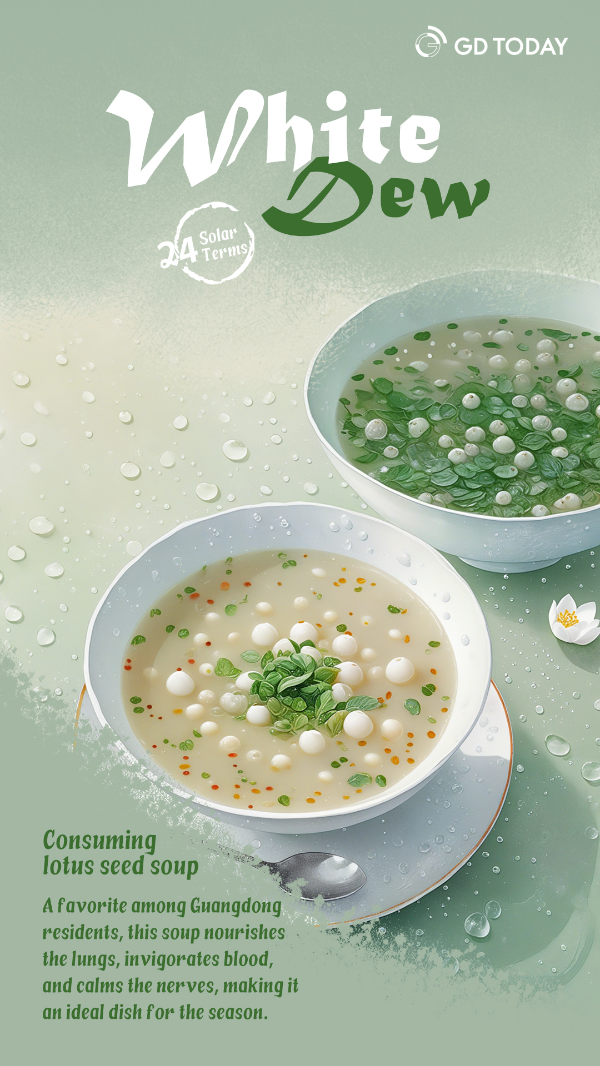 Consuming lotus seed soup: A favorite among Guangzhou residents, this soup nourishes the lungs, invigorates blood, and calms the nerves, making it an ideal dish for the season.