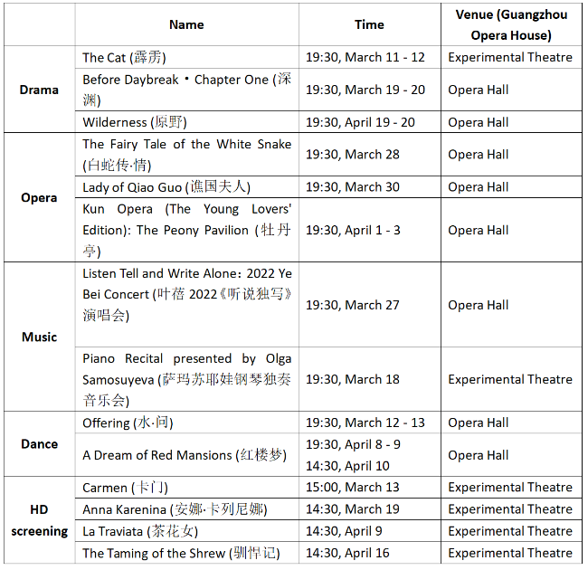 The programs of the art festival cover drama, traditional Chinese opera, music, dance, and opera screenings, presenting a cultural feast for audiences At the same time, there are also some interviews, reading events and fan meetings.