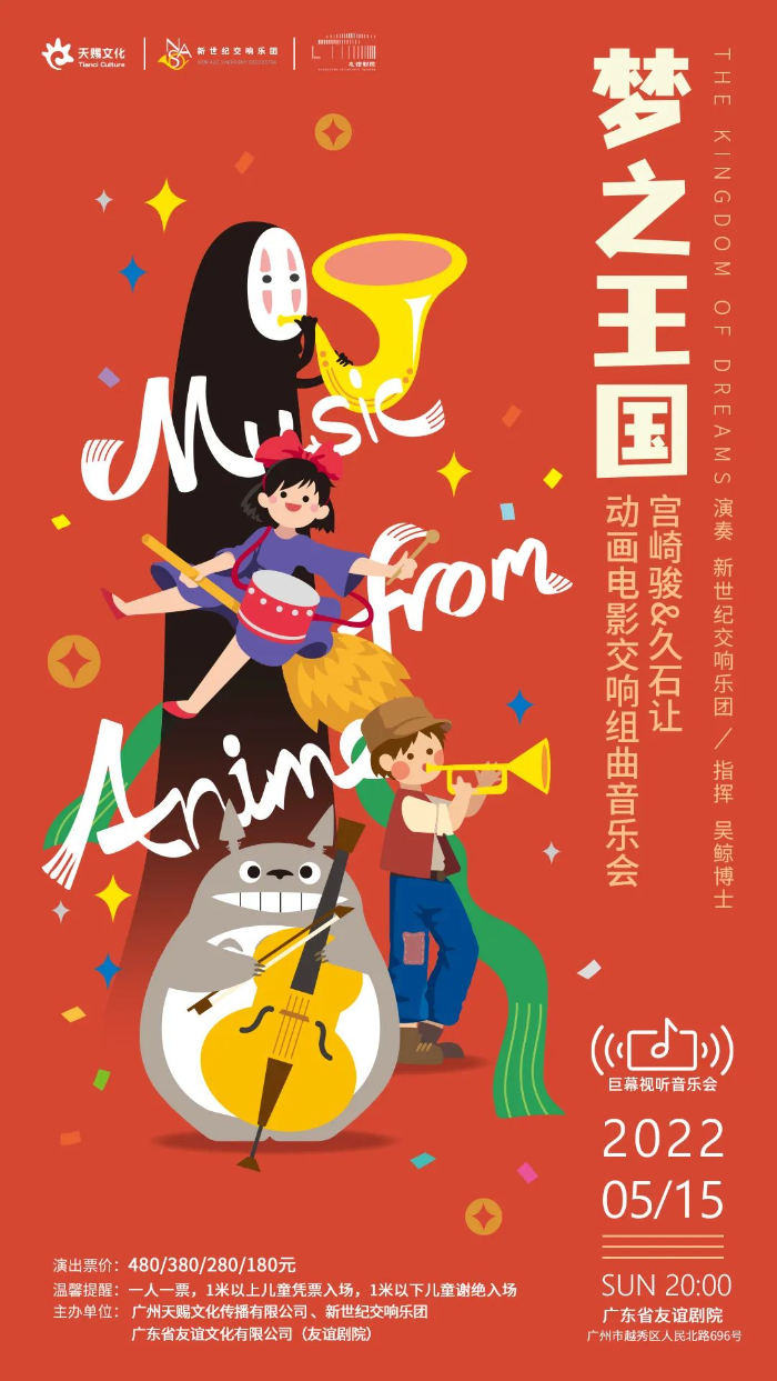 Japanese scriptwriter Miyazaki Hayao together with composer Joe Hisaishi has created a lot of fabulous animated movies with many background musical pieces for audiences, such as Castle in the Sky, Spirited Away, and My Neighbor Totoro. The New Age Orchestra will present ten symphonies inspired by 50 pieces from these movies together with the screenings of some classic parts of the animated movies.
