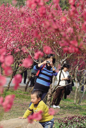 Peach Blossom Valley covers and area of more than 40,000 square meters, holding more than 4,000 peach trees of more than ten breeds. It is a Chinese-style garden with beautiful landscape modeled on Tao Yuanming (a great writer of Jin Dynasty)'s work The Story of Peach Blossom Valley. There are scenic spots like Bonanza Springs, Children R Us, Pebble Beach, Coyly Pavilion, and Peach Blossom Island. Peach Blossom Valley is permeated with the fragrance of peach flowers, attracting shutterbugs from faraway places.