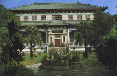 The Guangzhou Museum of Fine Arts is located east of the Zhenhai Tower in Yuexiu Hill. Its principal structure is a palace-style building in imitation of the Wenhua Hall in the Imperial Palace in Beijing, featuring grey bricks, green tiles, upturned eaves and secluded chambers. The tower was previously occupied by the Zhongyuan Library. In February 1957, the Guangzhou Museum of Fine Arts was built and opened to the public. Currently, it has a more than 300 square meter exhibition hall and an over 100 square meter eminent artists' gallery.