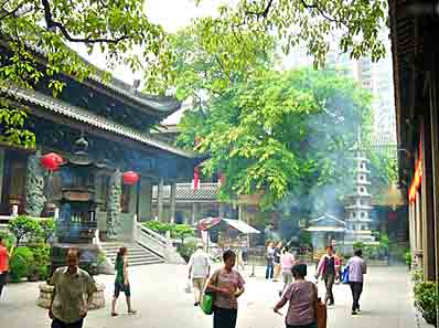 Legend has it that the Indian Monk Bodhidharma crossed the Indian Ocean and the Pacific Ocean and finally arrived in Guangzhou after three years of trudge in 526 (the 7th year of Emperor Liangwu's reign) to do missionary work in China. Later generations respected this eminent monk from Western Buddhist kingdom and named his landing place as "Landing Ground of Dharma". More than one thousand years passed, and the name was still in use. The temple Dharma built after his arrival in Guangzhou was called Xilai Monastery. This is the Buddha shrine from where he first spread the Buddhism doctrines. Dharma was later divinized as the founder of the Zen Buddhism in China. Now Cantonese are still respectful of Dharma. Many roads in the neighborhood of Xiajiu Road were named after him, including Xilai Zhengjie, Xilai Houjie, Xilai Xijie, Xilai Dongjie, Xindong Xinjie, etc. After its completion, Xilai Monastery went through several repairs in Sui Dynasty, Tang Dynasty, Song Dynasty, Yuan Dynasty and Qing Dynasty and changed its name to Hualin Temple.