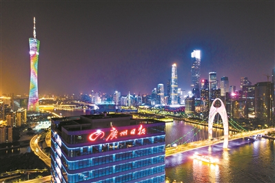 文化品牌地標選取四大文化媒體總部大樓和權屬物業,豐富四大文化媒體“線上+線下”文化傳播,強化文化品牌宣傳力度,打造一臺多陣地。廣州電視臺花果山建筑群引進新技術,廣告與夜景照明一體化設計,提升整體夜景效果,打造花果山超高清小鎮;廣東電視中心、南方報業大樓和廣州日報中心等廣告與建筑立面一體化設計,提升建筑立面品質。