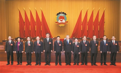 十三屆省政協領導班子合影。左起分別是鄭軻、李心、黃武、袁寶成、鄧海光、林克慶、許瑞生、鄭振濤、王學成、張嘉極、溫國輝、陳文明。