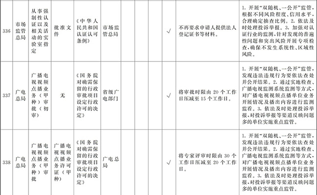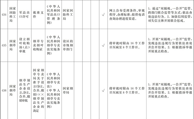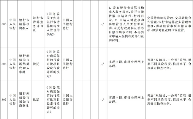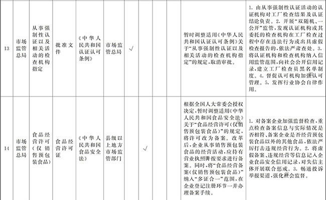 (一)直接取消審批。對設定必要性已不存在、市場機制能夠有效調節、行業組織或中介機構能夠有效實現行業自律管理、通過事中事后監管能夠有效規范的涉企經營許可事項,直接取消審批。