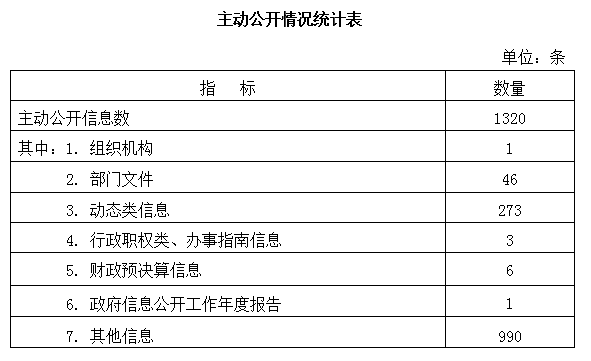 在主動(dòng)公開信息中,我局通過不同渠道和方式公開政府信息情況: 召開了一次新聞發(fā)布會(huì);通過政府網(wǎng)站公開信息507條;通過政務(wù)微博公開信息263條、政務(wù)微信公開信息42條;通過新聞媒體公開信息48條,通過政府刊物公開信息273條。及時(shí)辦理12345政府熱線工單,全年共辦理202起熱線咨詢工單,根據(jù)咨詢情況,完善12345熱線知識(shí)庫,增補(bǔ)5條統(tǒng)計(jì)知識(shí)。
