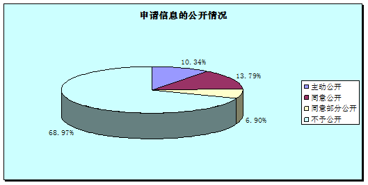 答復(fù)政府信息公開申請(qǐng)共29宗。其中,屬已主動(dòng)公開范圍3宗,占10.34%;同意公開4宗,占13.79%;同意部分公開2宗,占6.90%;“不予公開”的共20宗,占總數(shù)的68.97%(其中不同意公開2宗,占6.90%;不屬于本行政機(jī)關(guān)公開8宗,占27.59%;申請(qǐng)信息不存在9宗,占31.03%;申請(qǐng)內(nèi)容不明確1宗,占3.45%)。