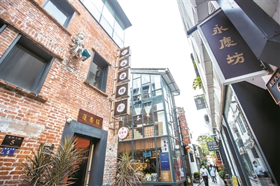游徑的第二站是永慶坊,這是這兩年的廣州“網(wǎng)紅”景點,近年來廣州遵循“修舊如舊、新舊融合”的城市微改造精神,對永慶坊采用“微改造”的模式,基于原來外輪廓不變的前提進行建筑立面更新,讓“舊”和“新”充分地有機結(jié)合,活化了這條著名的歷史文化街區(qū),讓老街重新煥發(fā)新生,在這里很適合走走停停,逛逛老街區(qū)里的各種店鋪。