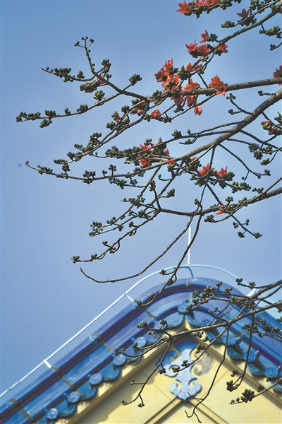 在中山紀念堂,350多歲的“木棉王”昂首綻放,為滿園春色繪上重彩艷光,火紅的木棉花猶如一團團焰火,洋溢著奮勇爭先的新氣象。