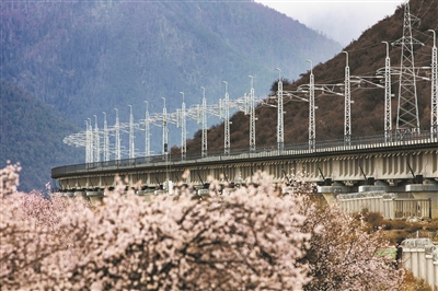 日前,在西藏自治區林芝市拍攝的拉林鐵路。