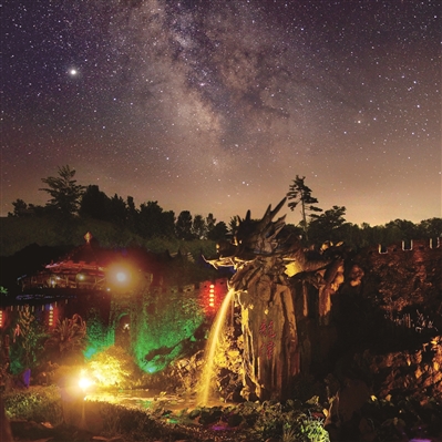 一個愜意的夜晚,三五個知心好友,一起舉杯邀明月。群山環抱中的連州,地處粵北山區,當夜幕降臨,仰望天空,滿天明亮的星星閃閃發光,整個銀河似乎都清晰地呈現眼前,森林披上了靜謐的外衣。你會驚訝于這里明亮璀璨的星星。皎潔的圓月在變幻莫測的星云里穿梭,心也會追隨著月光在銀河里旅行。