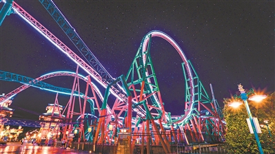 融創樂園夜晚亮起的彩色霓虹燈,讓樂園有了和白天不一樣的風采,雙龍飛舞、怒??駶?、巨龍飛舞等項目別具風采。而精彩的大湖秀同樣是拍照打卡的“好幫手”:煙火、歌舞、噴泉輪番上場,共同造就這華麗耀眼的光影大秀,在水上“書寫”著詩情畫意。入夜后,噴泉廣場還有精彩活動等著大家。在廣州融創樂園南越食府還能一邊品嘗美食,一邊拍攝奇幻燈籠坊。