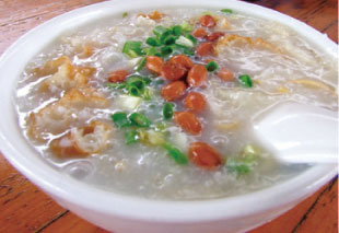 艇仔粥以新鮮的河蝦或魚片作配料,后來還增加了海蜇、炒花生仁、涼皮、蔥花、姜等,吃前當(dāng)即煮粥滾制,芳香撲鼻,熱氣騰騰,十分鮮甜。無論在街頭食肆,或如白天鵝賓館那樣的五星級酒樓,都可品嘗到這種廣州特有的粥品。