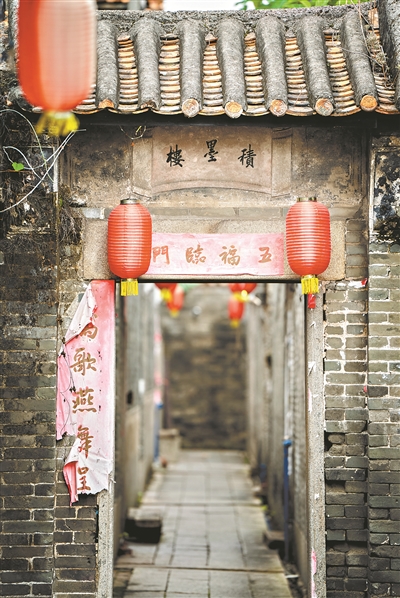 炮樓和門樓分布在村的出入口,下層有大門可關閉,上層設有窗眼,用于觀望和射擊。村民為保衛村落安全,還筑起了堅固的“防盜門”。記者從祠堂、書室之間轉進古巷道,還沒進巷口,就發現里邊“大有門道”。黃澤賢告訴記者,舊時,塱頭村每個巷口都有門閘;一入夜,門閘就會被放下,巷子內部可互通,但外人卻進不來。如今,巷口的石階上仍可見到“天圓地方”的門閘痕跡。