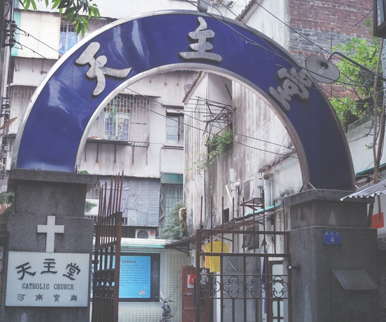 河南寶崗天主堂位于海珠區同福中路寶玉直街崇正里4號,原是一間教徒聚集祈禱的小公所,后由于教務發展的需要,教徒日漸增多,廣州教區購買與原公所相連的兩間房屋進行擴建,于1938年1月破土動工,同年6月份建成。建筑物為一座三層磚木結構的樓房,樓下作教堂使用,樓上兩層作神父的居室,總占地面積264平方米。1947年,廣州教區委托天主教美國瑪利諾外方傳教會代管該堂。1953年外籍神父離境回國,之后由中國籍神父任本堂神父。