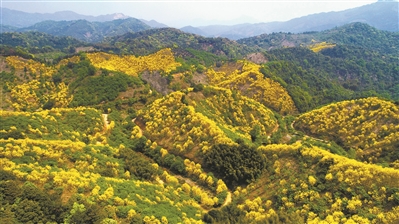 從化呂田,山坡上的黃花風鈴木勾勒出溫柔的自然曲線。拍客:巢金紅