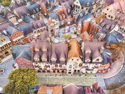 花都九龍湖,歐式小鎮街道蜿蜒,搭配粉色調,帶出浪漫的度假感覺。拍客:盧文