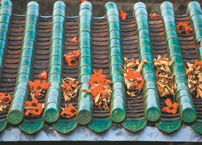 2月14日,鎮(zhèn)海樓屋頂上,還有不少被風(fēng)吹落的木棉花,頗有詩(shī)意。