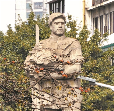 2月14日,海珠廣場(chǎng)的英雄雕像前,木棉綻放。