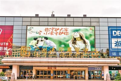 ②花城廣場第二少年宮的LED屏幕集中展示了10個在防控疫情中作出突出貢獻的最美家庭。