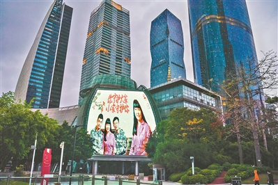 3月8日下午2點,以“致敬最美戰(zhàn)‘疫’家庭”為主題,在廣州市流花路流花展貿(mào)中心、北京路步行街、珠江新城花城廣場第二少年宮三個標志性地點的戶外宣傳屏同步點亮,集中展示了10個在防控疫情中作出突出貢獻的最美家庭。現(xiàn)場不斷播放10個最美戰(zhàn)“疫”家庭的全家福,吸引了不少路過的市民駐足觀看。
