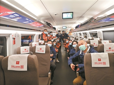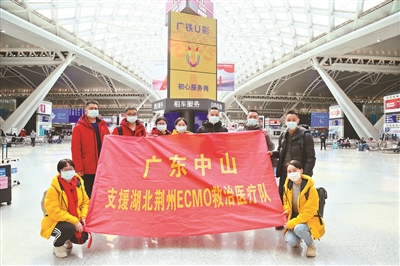 2月18日,由王昊帶領(lǐng)的第十九批醫(yī)療隊(duì)隊(duì)員們?cè)趶V州南站準(zhǔn)備出發(fā)。