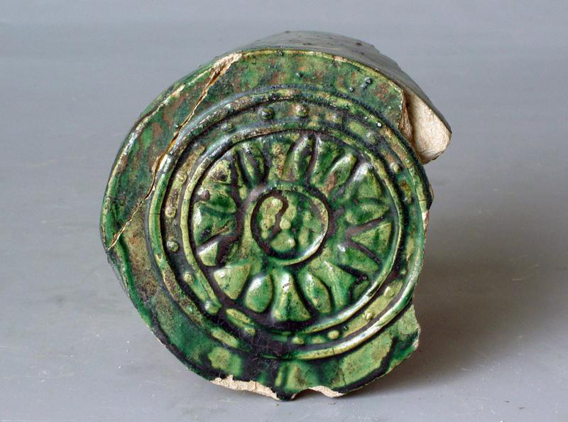 宋代蓮花瓦當更加圖案化,美感、藝術性不高,可能和那一時期廣州的政治地位下降有關,當時這里只是州府和經略安撫使司署所在地。北宋中后期出現菊花紋,但早期菊花特點并不明顯。南宋時期,菊花瓣很明顯地變得細長,折枝花卉紋也出現了,象征“開枝散葉”。