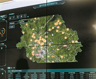 科技助力,數字農業監控平臺上,顯示著養殖鴿棚和光伏電板分布圖