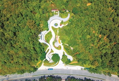 白云山柯子嶺門崗,以“云”的理念作為場(chǎng)地肌理元素,配合流水般的步道,營(yíng)造出靈動(dòng)的空間意境。