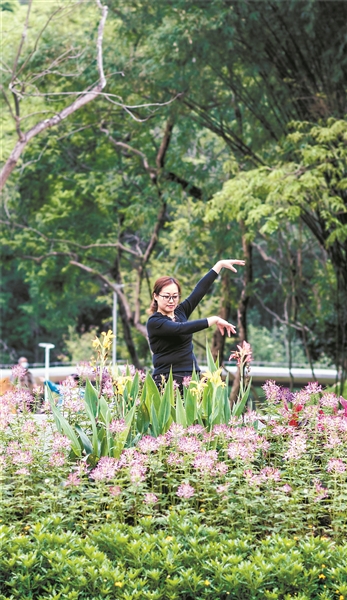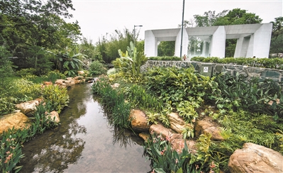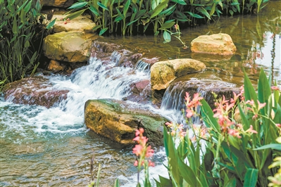 西門柯子嶺繁花盛開(kāi),流水潺潺,是市民休憩的好去處。