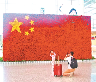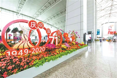 機(jī)場(chǎng)內(nèi)布置各種花卉慶國(guó)慶