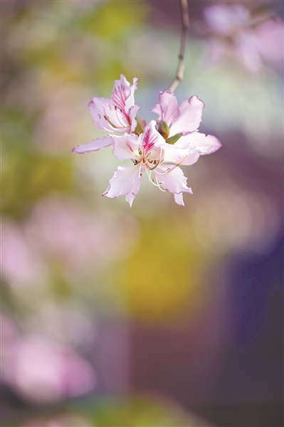 2月的羊城格外溫暖,華南農(nóng)業(yè)大學(xué)內(nèi)的宮粉紫荊花已經(jīng)悄然綻放。粉與白的紫荊深淺交織,燦爛繁花構(gòu)成一片片粉色海洋。陽(yáng)光斜照,千樹(shù)萬(wàn)花透著明媚的光,一派春暖花開(kāi)、生機(jī)勃勃之景展現(xiàn)眼前。因疫情防控需要,目前華農(nóng)校內(nèi)仍處于封閉管理階段,只有零星賞花人駐足花下靜靜觀賞。市民不妨通過(guò)鏡頭感受這片春日花海。