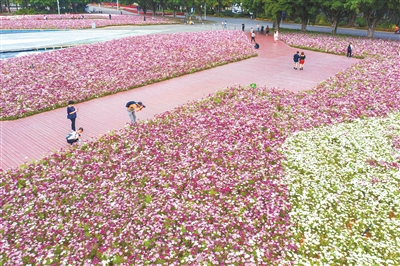 “十三五”以來,廣州市以“四個出新出彩”引領各項工作全面出新出彩,努力打造美麗宜居花城。充滿生機的廣州,除了海心沙,多個公園、大街小巷都有波斯菊美麗的身影,生命力旺盛的小花,傳遞著幸福與堅強。“在這快節奏的繁華都市里,花海就在我們身邊,每天都有驚喜,讓人在忙碌之余,感到溫馨又放松。”在珠江新城上班的白領俊儀說,廣州的花海,也如城市特質一般,清新脫俗,親切宜人。