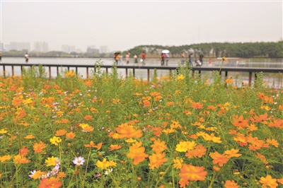 13萬平方米的波斯菊花海,近日在海心沙公園絢麗綻放。