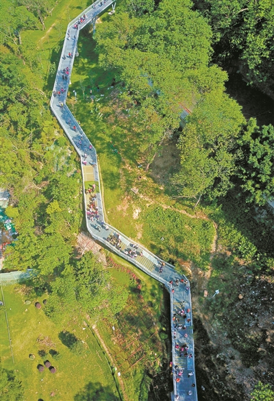 市民游客在越秀區花果山的云道徒步。