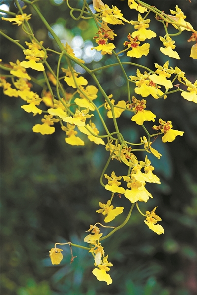 初夏的廣州華南植物園繁花似錦,黃燦燦的文心蘭花開(kāi)正艷