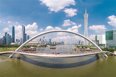 海心橋是廣州首座珠江兩岸人行橋,成為連接珠江兩岸經濟、商務發展的新紐帶。
