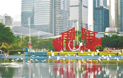 不遠(yuǎn)處,是廣州寫字樓群最密集的珠江新城CBD。“以前都想不到,在這個(gè)繁華的大都市中央,還會(huì)有這么多鷺鳥在天空飛過,它們的‘家’就安在鬧市中心的海心沙島上。”王先生說,他每次都會(huì)數(shù)一下鷺鳥的數(shù)量。