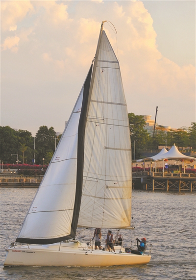 近日天氣晴好,市民泛舟珠江,心曠神怡。