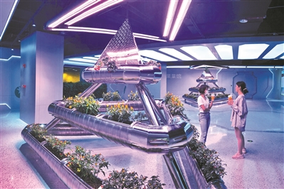 據介紹,花城農園負二層有著一個以太空驚奇場景設置的大型現代農業科普空間,通過引進國內外科技農業前沿種植設備,聯動華南農業大學、廣東省農科院科研團隊,將專業科研成果和現代化生產設備集體化呈現。該科普館分別設置了沉浸式太空栽培艙等科普場景,展示現代農業技術下蔬果生長管理的新方式,營養價值的新體現、特殊科研農產品的新展示,以及農業與生活的新結合。