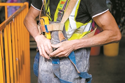 對于通渠人來說,每一次下井清淤,都是一次負(fù)重。他們需要穿戴防水服,佩戴頭盔及照明頭燈、長管式呼吸器面罩,身綁安全繩,攜帶對講機(jī)和探桿,背上便攜式氣體監(jiān)測儀,連接到井外監(jiān)測設(shè)備上,實時監(jiān)測渠內(nèi)一氧化碳、氯化氫等氣體的濃度,來保證工作環(huán)境的安全。一身的裝備,很是沉重。